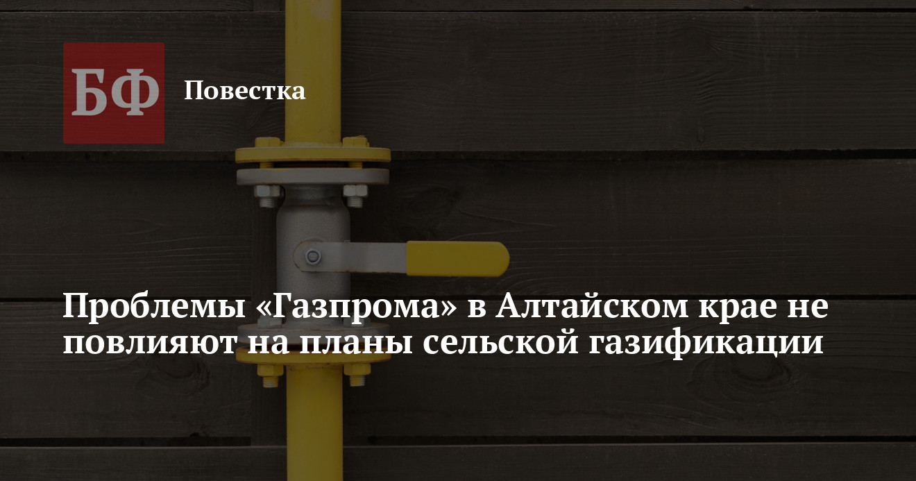 проблемы наверняка не у "Газпрома", а у правительства Алтайского края. Достаточно вчерашнего выступления министра Воронова про "северный обход" Барнаула с южной стороны и так во всем. Сколько было речей про "великую" биатлонную базу в "Белокурихе-2", а потом , на последней пресс-конференции губернатора, про нее полная тишина