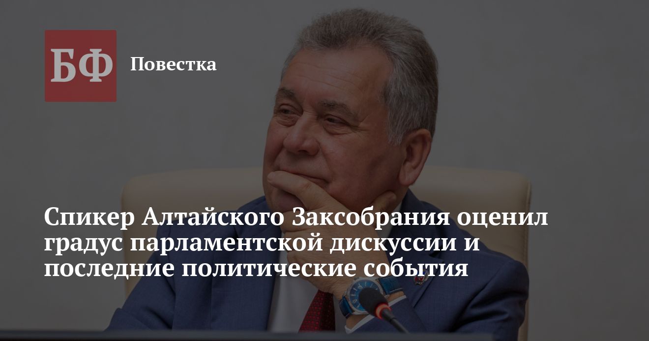 Сложившаяся конфигурация Алтайского Заксобрания делает его местом, где вся законотворческая деятельность выстроена на дискуссии. Об этом заявил спикер АКЗС Александр Романенко в ходе интернет-конференции на сайте парламента. Также он прокомментировал исход членов фракции КПРФ, назначение Александра Евстигнеева на пост представителя исполнительной власти в парламенте и протест в Павловском районе по поводу строительства мусорного завода.