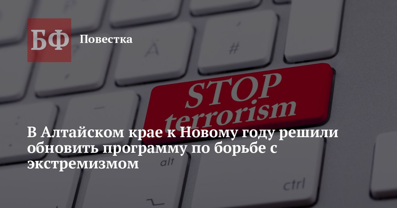 Правительство Алтайского края приняло новую программу по противодействию экстремизму и терроризму в регионе. Текст документа опубликован на офсайте госоргана. Нельзя не отметить, что он весьма краток, в отличие от прежней аналогичной программы, хотя в новой ее инкарнации появился дополнительный фактор в виде усиления активности иностранных организаций на фоне спецоперации ВС РФ на Украине.