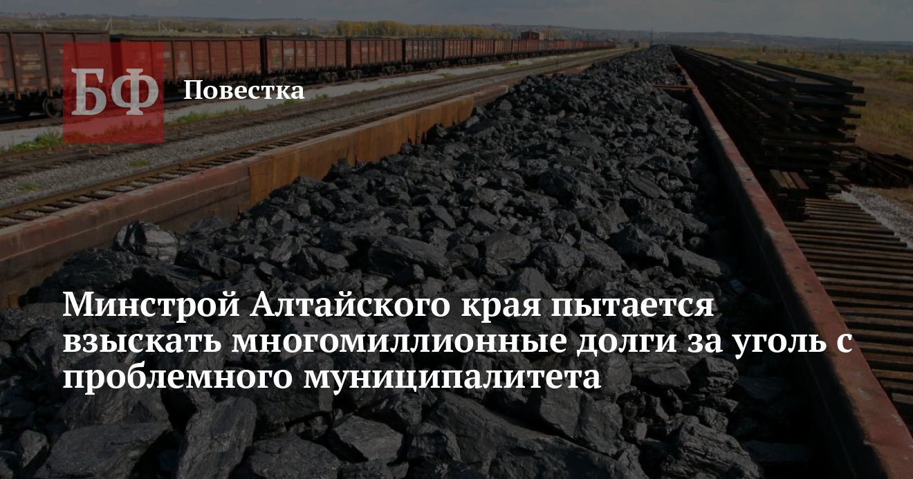 Заявление о взыскании долга Минстрой Алтайского края подал в конце декабря. Его уже приняли к производству. В документе Арбитражного суда указано, что министерство пытается взыскать с администрации Каменского района сумму в 123,8 млн рублей за поставки угля из резервного запаса региона. Она сформировалась в рамках соглашения о консолидации и реструктуризации долга, которое заключили в сентябре 2020 года.
