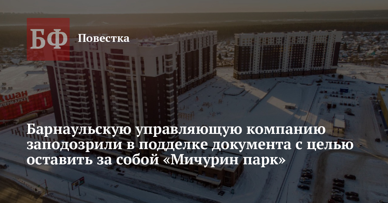 В Барнауле жильцам ЖК «Мичурин парк» удалось-таки избавиться от прежней управляющей компании ООО «ЖКИ», которая, по их мнению, не справлялась со своими обязанностями. Чтобы добиться этого, они в том числе обращались в прокуратуру Алтайского края. В ведомстве сообщили ИА «Банкфакс», что упомянутая компания пыталась оставить за собой «Мичурин парк», предоставив соответствующий протокол общего собрания собственников помещений. Однако часть подписей в документе были, предположительно, сфальсифицированы, в связи с чем возбуждено уголовное дело.