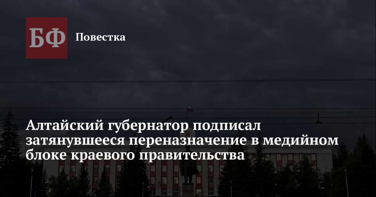 При этом нельзя не отметить затянувшиеся назначения во всем медийном блоке алтайского правительства. Так, до сих пор вакантной остается позиция пресс-секретаря губернатора. Она пустует с того момента, как ее в мае 2022 года оставил Дмитрий Негреев. По некоторым данным, на нее якобы претендовали и Никитин, и замначальника краевого департамента по информационной политике Алексей Спесивцев. Однако, как говорят инсайдеры, в качестве наиболее вероятной кандидатуры на текущий момент обсуждается начальник отдела все того же департамента информполитики Елена Тетерятник.