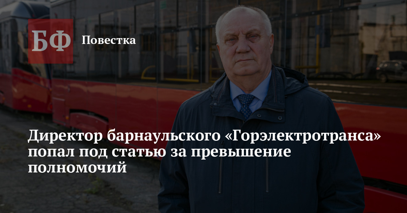 Руководитель МУП «Горэлектротранс» Барнаула Николай Петряшин оказался фигурантом уголовного дела. Материалы о превышении должностных полномочий в его отношении на днях поступили в Индустриальный районный суд. Сам директор предприятия сейчас находится под домашним арестом.