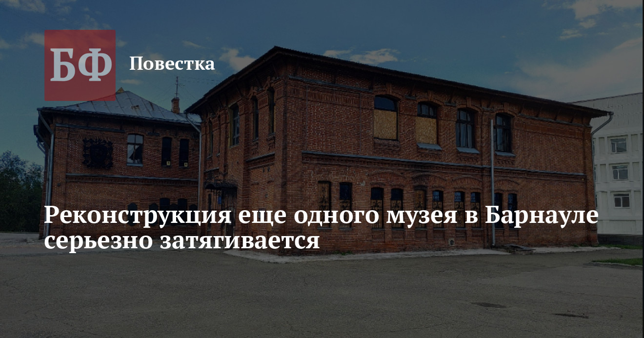 Ремонт здания военно-исторического отдела Алтайского краеведческого музея вышел за рамки установленных сроков. 18 января на объекте побывал губернатор Виктор Томенко. По его словам, требуется корректировка проектно-сметной документации, дополнительное финансирование и установление новых сроков сдачи.