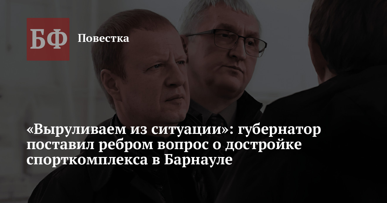С его слов, ФОК находится в высокой степени готовности. Сейчас подрядчик ждет поставку материалов для завершения работ. Однако, как отметил губернатор, «Иносиб» говорит о необходимости выделения на стройку денег из бюджета в дополнение к той сумме, которая уже была оговорена и выделена ранее. В связи с этим Томенко поставил вопрос ребром: либо власти этот вопрос проработают и продолжат взаимодействовать с концессионером, либо завершат строительство сами. «Поручил новому министру спорта Ивану Витальевичу Нифонтову и вице-премьеру края Виталию Владимировичу Снесарю довести рассмотрение этого вопроса по существу до конца и внести мне предложения — продолжаем работу с „Иносибом“ и „выруливаем“ из ситуации или разрываем отношения и завершаем все сами. Сложное положение», — констатировал глава Алтайского края.