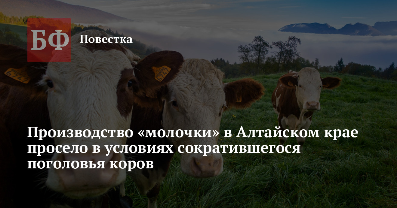 Напомним, что Минсельхоз Алтайского края в своем мониторинге по итогам 2023 года не обнародовал показатели поголовья в животноводстве, хотя они относятся к ключевым и в отчетах за предыдущие годы присутствовали. Таким же «пустым» оказался мониторинг за январь — ноябрь 2023 года. А в последний раз данные присутствовали в мониторинге за январь — октябрь 2023-го, о котором «Банкфакс» упоминал в материале о сокращении поголовья. Агентство писало, что только за сентябрь и октябрь прошлого года поголовье КРС в Алтайском крае сократилось на 22,2 тысячи (в том числе коров — на 6,3 тысячи). Вместе с этим минувшей осенью сельчане рассказывали, что вынуждены забивать скот из-за кратного подорожания кормов на фоне плохого урожая.