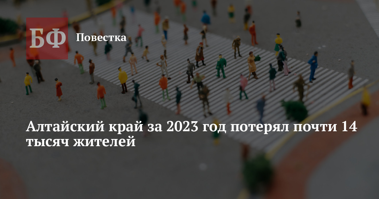 По опубликованным Алтайкрайстатом данным, в январе-декабре 2023 года в Алтайском крае родились 16 632 человека, а умерли — 30 382, в том числе 67 детей, не доживших до одного года. Таким образом, естественная убыль составила 13 750 человек. Это заметно меньше, чем в январе-декабре 2022 года, когда регион потерял 16 347 человек. Тогда смертность была выше на 3542 человека и достигала показателя в 33 924 погибших, в том числе 71 ребенок в возрасте до года. Правда, выше в 2022 году была и рождаемость — на 945 младенцев при общем показателе в 17 577 новорожденных.