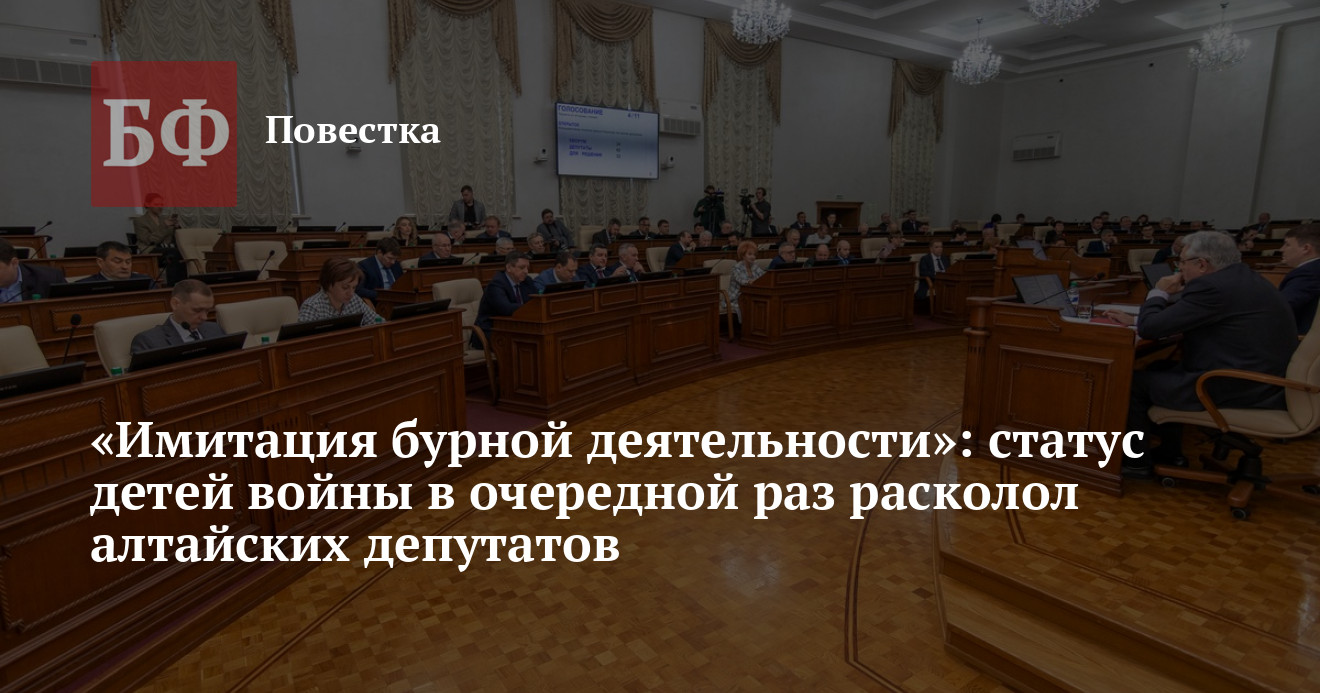 Вопрос об установлении единого статуса детей войны снова стал поводом для споров депутатов Алтайского Заксобрания. В ходе очередной сессии представители оппозиции заявили, что данную тему обсуждают уже несколько лет и никаких серьезных изменений не произошло. Это спровоцировало острую политическую полемику.
