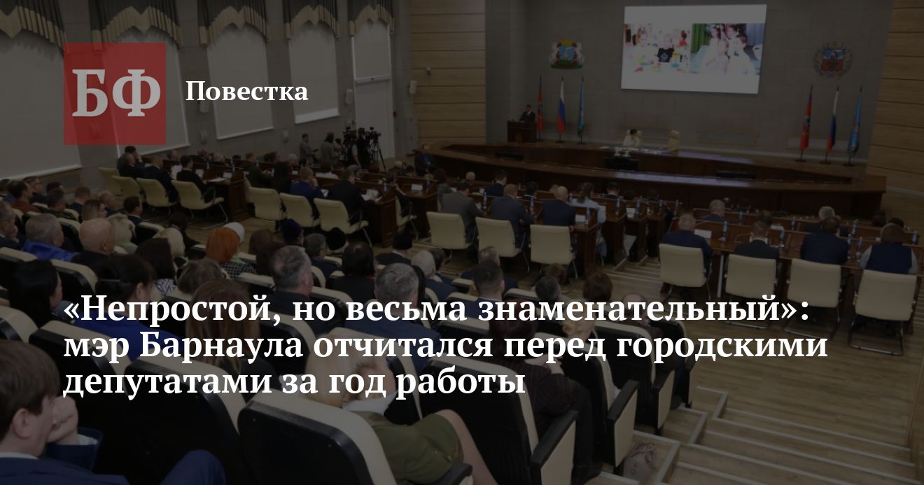 Вячеслав Франк еще в начале своего доклада отметил, что прошедший год был для города хоть и непростым, но весьма знаменательным. Так, индекс промпроизводства в муниципалитете превысил общероссийский, инвестиционная активность предпринимателей растет. «Значимый результат года — сохранение стабильной ситуации на рынке труда. В Барнауле рекордно низкий уровень безработицы. При этом наблюдается нехватка квалифицированных кадров. На особом контроле — поэтапное повышение оплата труда работников бюджетной сферы», — цитирует градоначальника пресс-служба мэрии. С его слов, краевые власти за год реализовали в городе 14 социально значимых проектов в области дорожного строительства, медицины, образования, культуры и спорта.