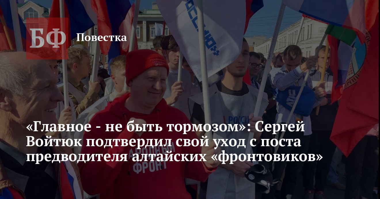 Сергей Войтюк подтвердил информацию о своем намерении покинуть пост руководителя исполкома отделения ОНФ в Алтайском крае. В разговоре с корреспондентом ИА «Банкфакс» он объяснил такой шаг тем, что уезжает в другой регион по семейным обстоятельствам. Однако, судя по его комментарию, это не единственная причина ухода из организации.