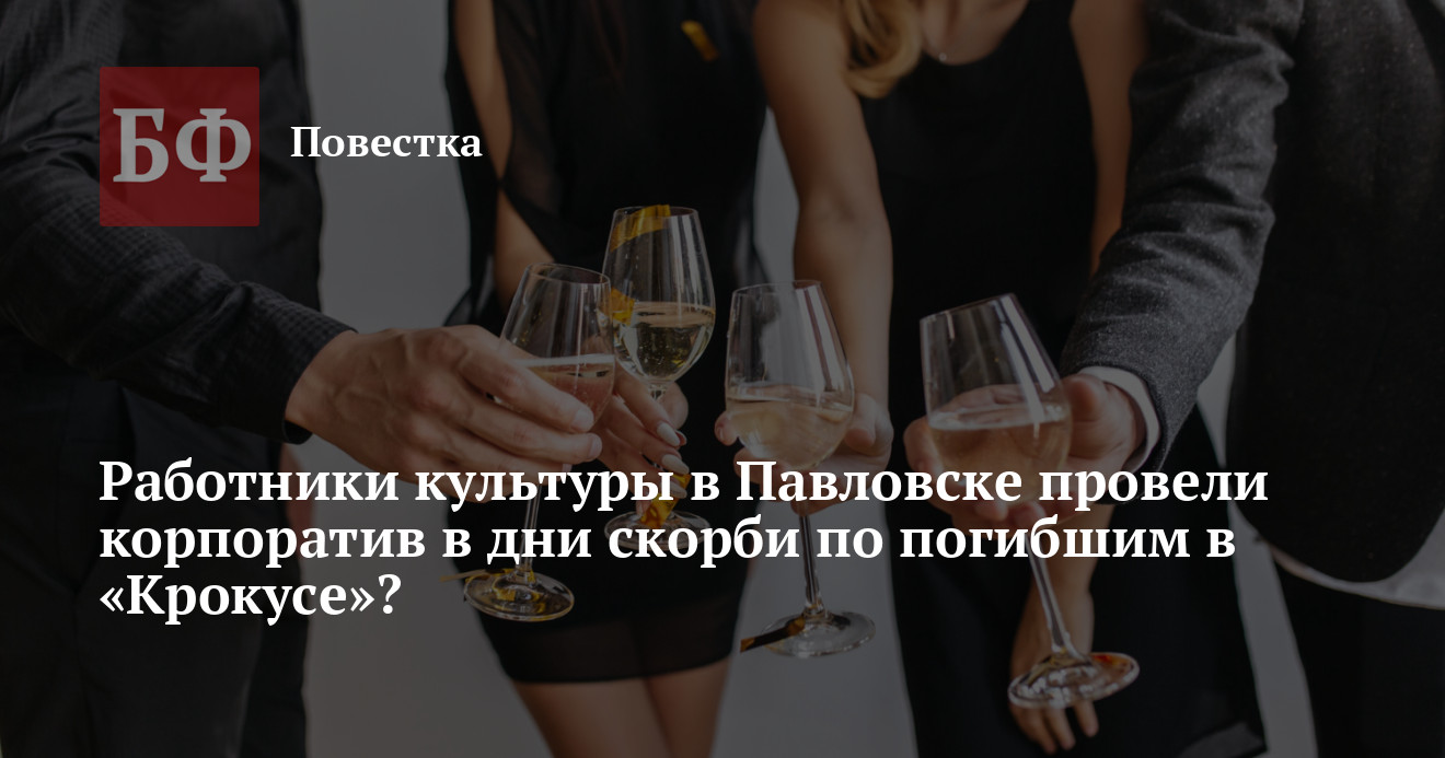 В Павловском районе 25 марта, предположительно, работники сферы культуры могли провести фуршет по поводу своего профессионального праздника, несмотря на трагические события в «Крокус Сити Холле» и акции памяти, прошедшие по всей стране. Об этом «Банкфаксу» сообщили сразу несколько источников.