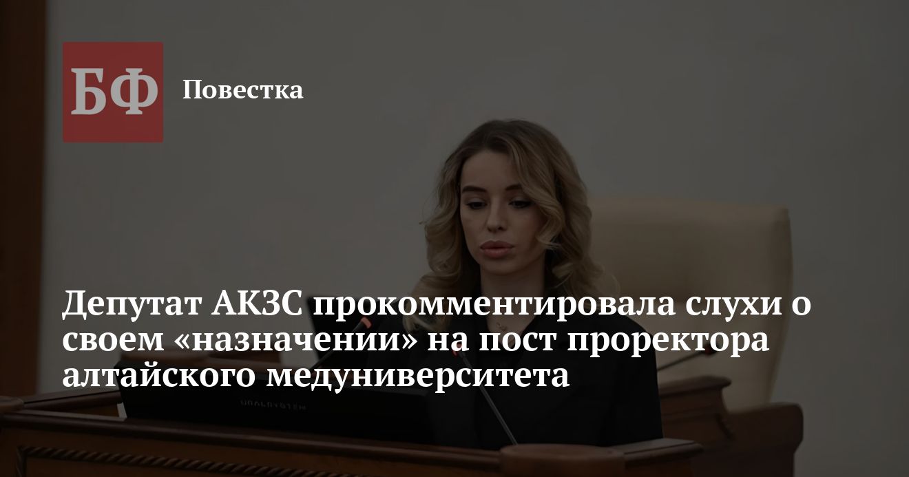 Координатор ВОД «Волонтеры-медики» в Алтайском крае и СФО, депутат Алтайского Заксобрания Анна Ведлер отринула слухи о своих притязаниях на должность проректора по воспитательной работе и молодежной политике в АГМУ, которую до недавнего времени занимал ее коллега Артем Сафонов. В своем Telegram-канале она заявила, что имеет иные планы на свою дальнейшую деятельность.