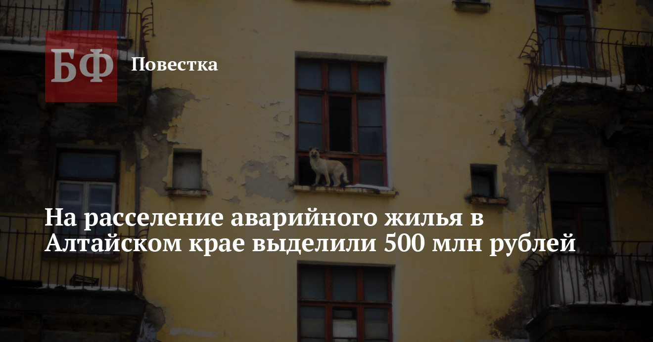 Власти Алтайского края выделили из бюджета 500 млн рублей на расселение аварийного жилья в 2024 году. Об этом 15 апреля на заседании правительства сообщил глава регионального Минстроя Иван Гилев.