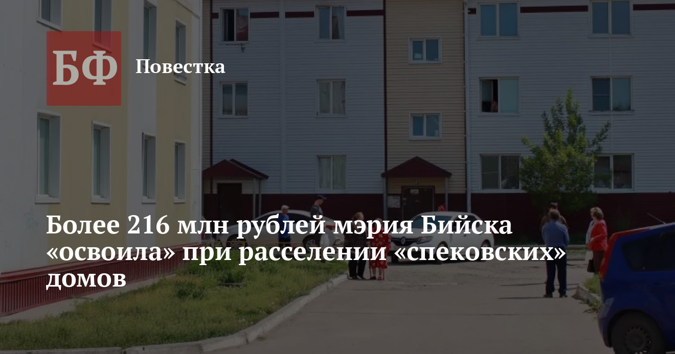 140 квартир в скандально известных домах на улице Спекова уже расселила администрация Бийска, осталось дело за 26 помещениями. Об этом 6 мая сообщила пресс-служба мэрии наукограда в ответ на запрос ИА «Банкфакс». Сумма освоенных средств превысила 216 млн рублей.