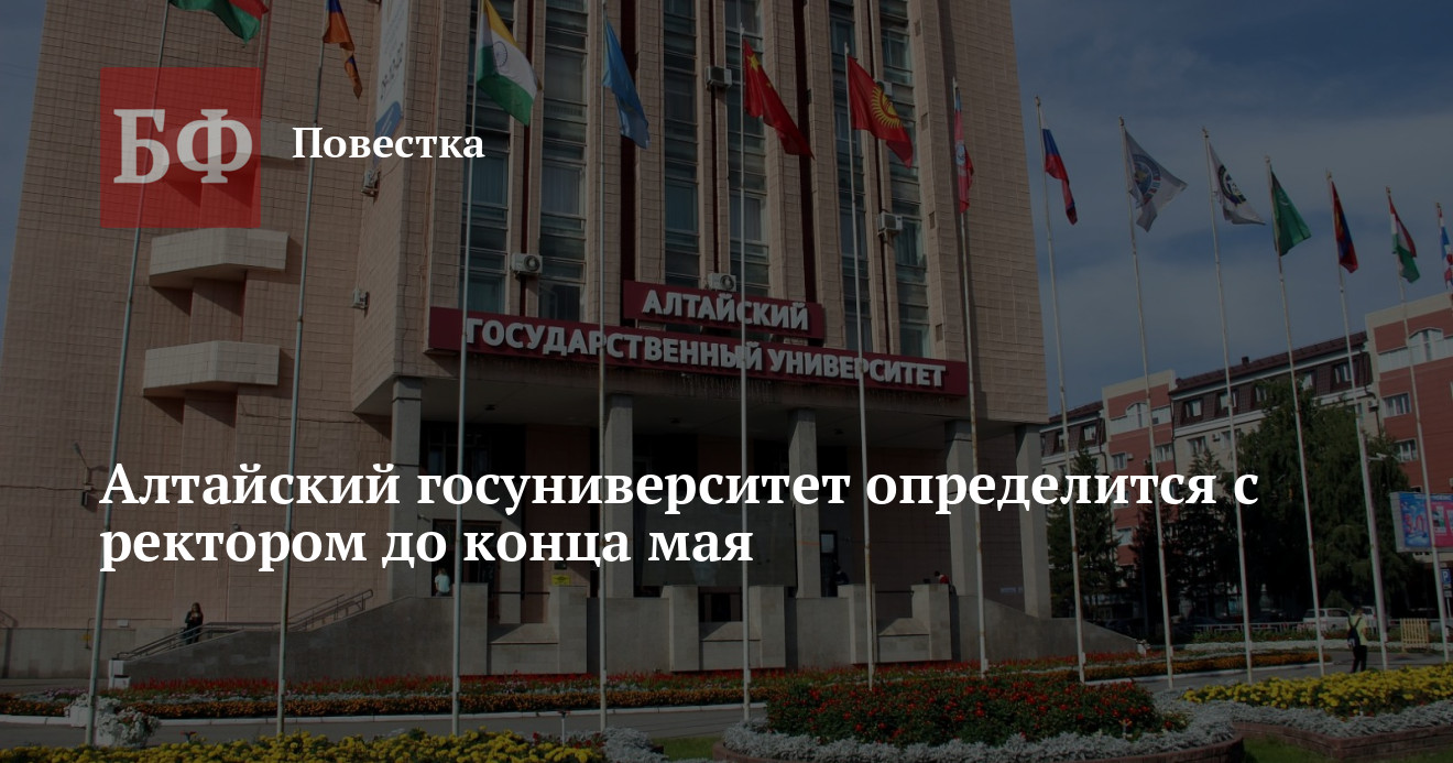 Ранее в Алтайском госуниверситете указывали, что конференция по выборам ректора, скорее всего, пройдет в начале июня, как это было в прошлый раз. Однако, как следует из опубликованного на сайте вуза приказа за подписью Сергея Бочарова, датированного 3 мая, конференцию собираются провести 28 мая в концертном зале университетского корпуса на улице Димитрова. В той же вкладке опубликован список претендентов на должность руководителя: Сергей Бочаров и Роман Ракитин.