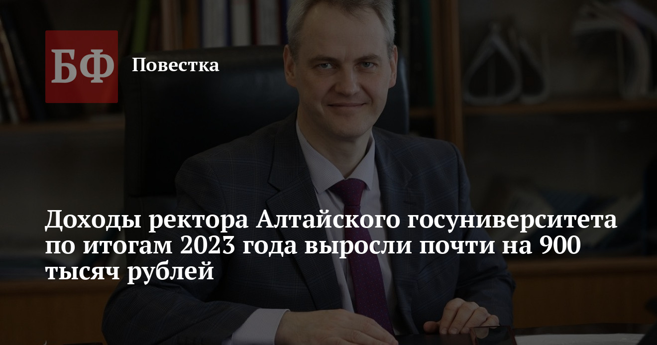 Руководство АлтГУ отчиталось о доходах за 2023 год. Согласно документу, опубликованному на сайте вуза, с учетом среднемесячной зарплаты ректора Сергея Бочарова его заработок мог составить порядка 5,7 млн рублей, что почти на 900 тысяч рублей больше, чем в 2022 году.
