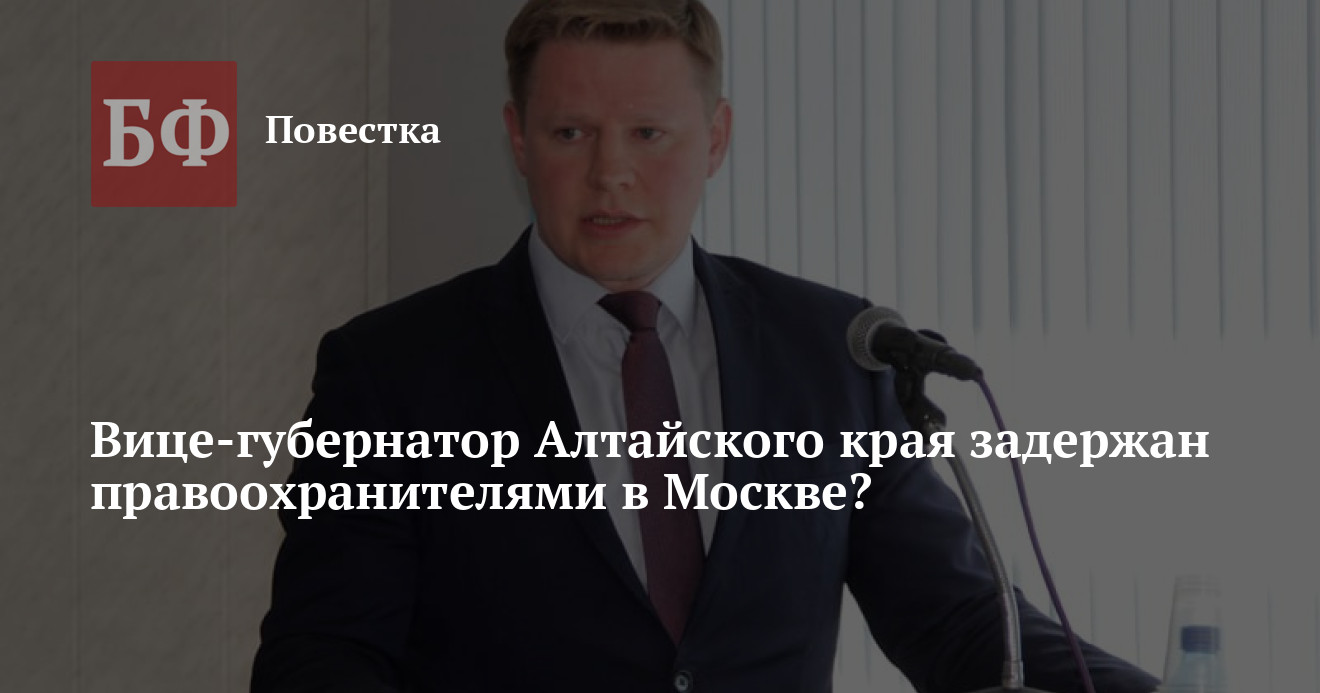 Заместитель губернатора Алтайского края Иван Кибардин, предположительно, задержан в Москве представителями одного из силовых ведомств. Соответствующая информация начала распространяться среди наблюдателей и в алтайском сегменте Telegram. Инсайдеры считают, что вице-губернатора могли задержать по подозрению в мошенничестве при получении крупной суммы денег.