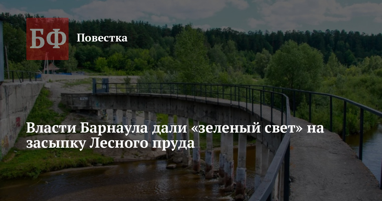 Профильный комитет администрации Барнаула выдал разрешение на проведение строительных работ по созданию искусственного земельного участка на Лесном пруду. Данная информация размещения на его сайте. Таким образом, ООО «МДС-Алтай» приступает к реализации проекта на местности. В будущем новую территорию планируется застроить многоэтажными домами.