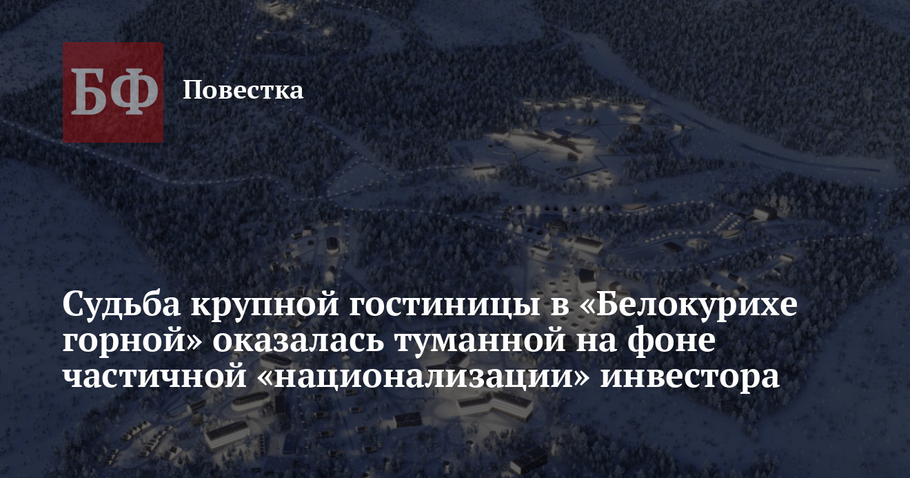 Напомним, по сообщениям властей, на будущей туристической территории «Белокуриха горная» площадью 49,3 га планируется создать круглогодичный курорт на 1160 номеров в местах размещения различной категории звездности. Инфраструктура включает в себя гостиничный и курортный комплексы, парк-отель, SPA-отель с оздоровительным центром и акватермальный курорт, указывала госкорпорация «Туризм.РФ». Туркластер развивается на принципах государственно-частного партнерства, предполагались вложения в размере около 17,6 млрд рублей. Согласно информации на сайте госкорпорации «Туризм.РФ», на конец 2023 года соглашения о намерениях по участию в реализации мастер-плана развития территории были подписаны с ОАО «РЖД» — «РЖД-медицина», ООО «МНК-групп», ООО «Экспресс-Тур», АО «Пансионат Былина» и ООО «Азимут девелопмент».
