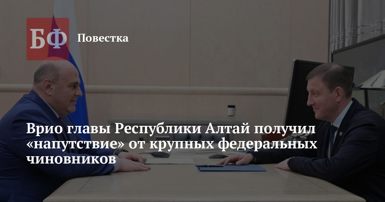 Сразу несколько статусных чиновников федерального уровня встретились с временно исполняющим обязанности главы Республики Алтай Андреем Турчаком. Согласно официальным данным, новоиспеченный руководитель РА обсудил перспективы развития региона и отдельные отраслевые проекты с председателем правительства России Михаилом Мишустиным, его заместителем Дмитрием Патрушевым и министром строительства и ЖКХ Иреком Файзуллиным.