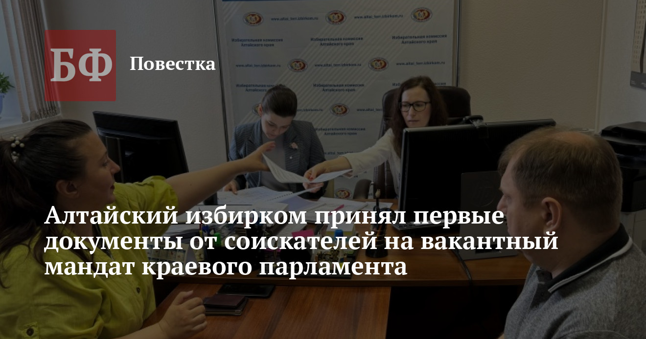 Имена своих соискателей обе партии назвали на текущей неделе. Коммунисты решили, что выдвинут секретаря по агитационно-пропагандистской работе Барнаульского горкома Матиаса Деница, а справедливороссы назвали своим кандидатом бывшего депутата Барнаульской гордумы Оксану Молодых. 20 июня крайизбирком сообщил о том, что рабочая группа приняла документы для заверения списков кандидатов от обеих партий. Решение о заверении этих списков или же об отказе должно быть принято в трехдневный срок.