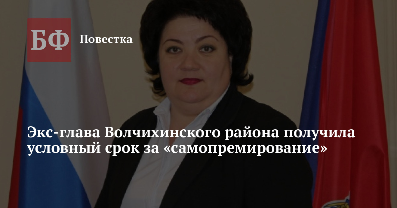 Волчихинский районный суд вынес приговор по уголовному делу Елены Артюшкиной, некогда возглавлявшей муниципалитет. Как рассказали «Банкфаксу» в суде, бывшую чиновницу признали виновной в незаконном «самопремировании» и приговорили к условному сроку.