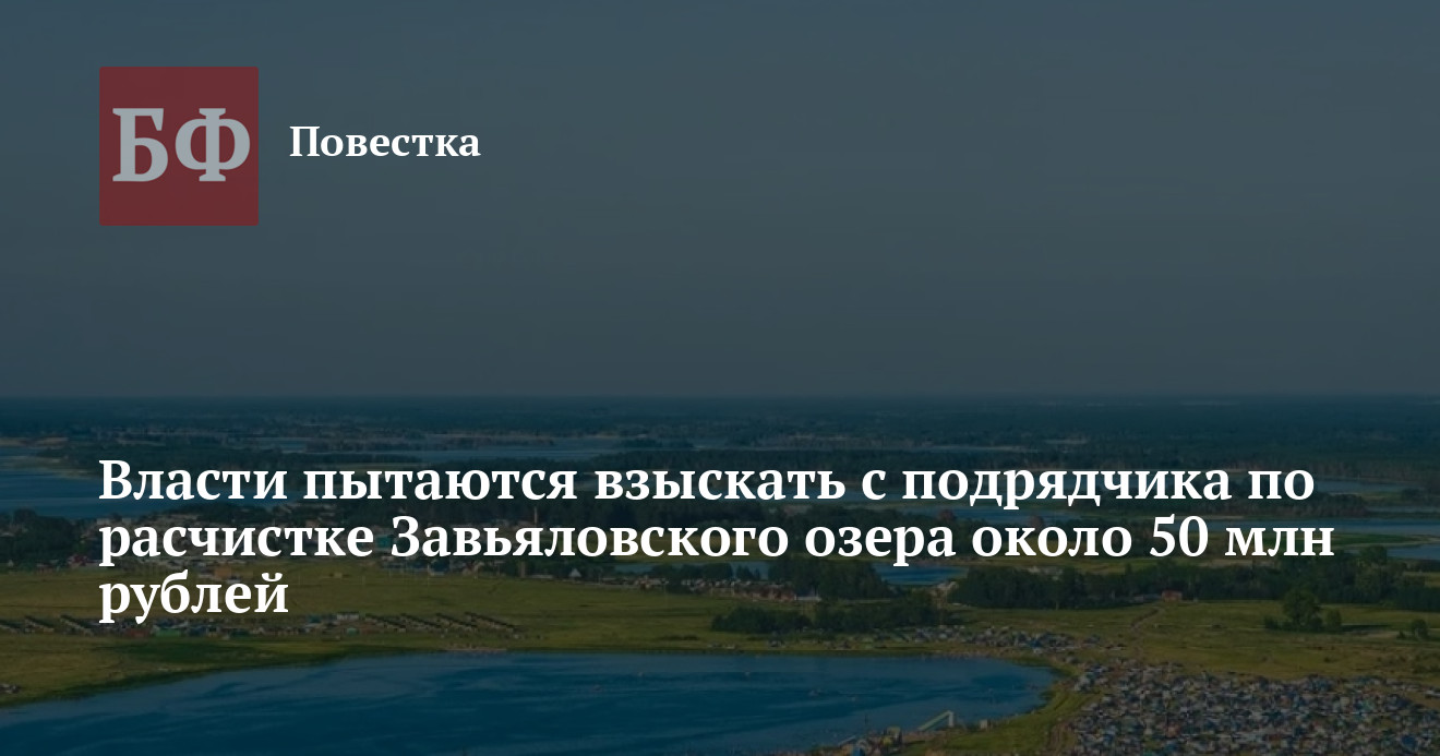 Минприроды Алтайского края подало иск к новосибирской компании «Специальное и транспортное строительство» («Спецтрансстрой») о взыскании около 49,3 млн рублей. Информация об этом содержится в картотеке Арбитражного суда Алтайского края. Эта организация по контракту с министерством занимается расчисткой Завьяловского озера.