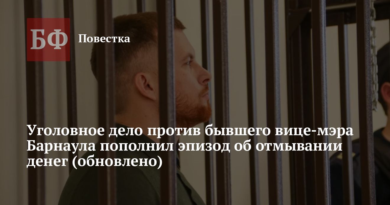 Следственные органы вменили еще одно преступление бывшему вице-мэру Барнаула Антону Шеломенцеву. Как указано в сообщении объединенной пресс-службы судов Алтайского края, его также обвиняют в отмывании денег в крупном размере.