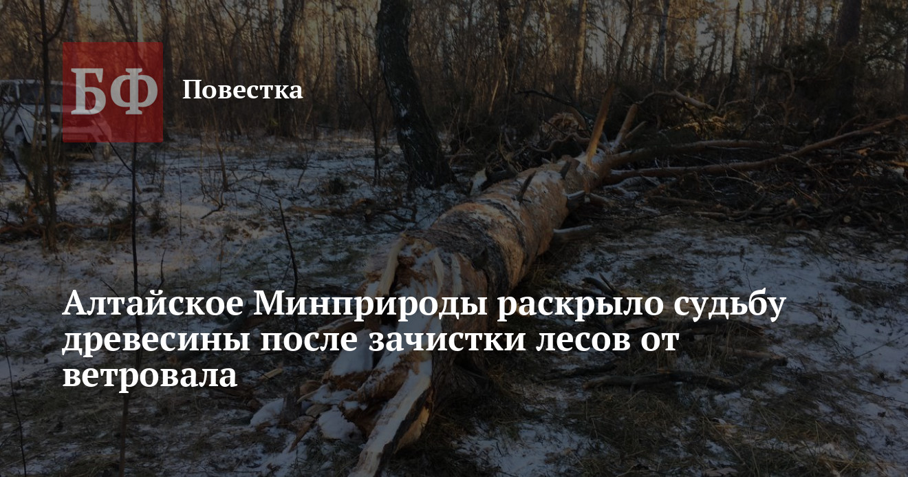 Отдельно «Банкфакс» спрашивал в алтайском Минприроды, как в дальнейшем будет использована ветровальная древесина. В ведомстве обтекаемого ответили: «Заготовленная ветровальная древесина будет использована краевыми автономными учреждениями и лицами, использующими леса, а также предлагаться местному населению в целях обеспечения деловой и дровяной древесиной для собственных нужд». В каких целях дерево будут использовать лесхозы региона, не уточняется.
