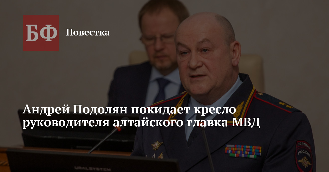 Начальник ГУ МВД России по Алтайскому краю Андрей Подолян объявил коллективу о своем уходе с поста. Об этом сообщают сразу несколько источников ИА «Банкфакс». В то же время пресс-служба ведомства заявляет, что пока не обладает информацией об отставке Подоляна.