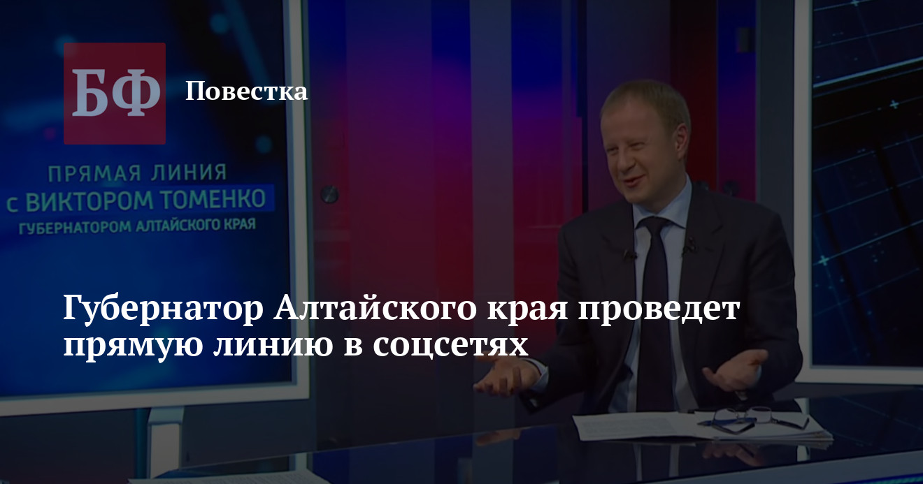 Виктор Томенко проведет очередную прямую линию. Как сообщила пресс-служба правительства Алтайского края, на этот раз ее организуют в соцсетях.