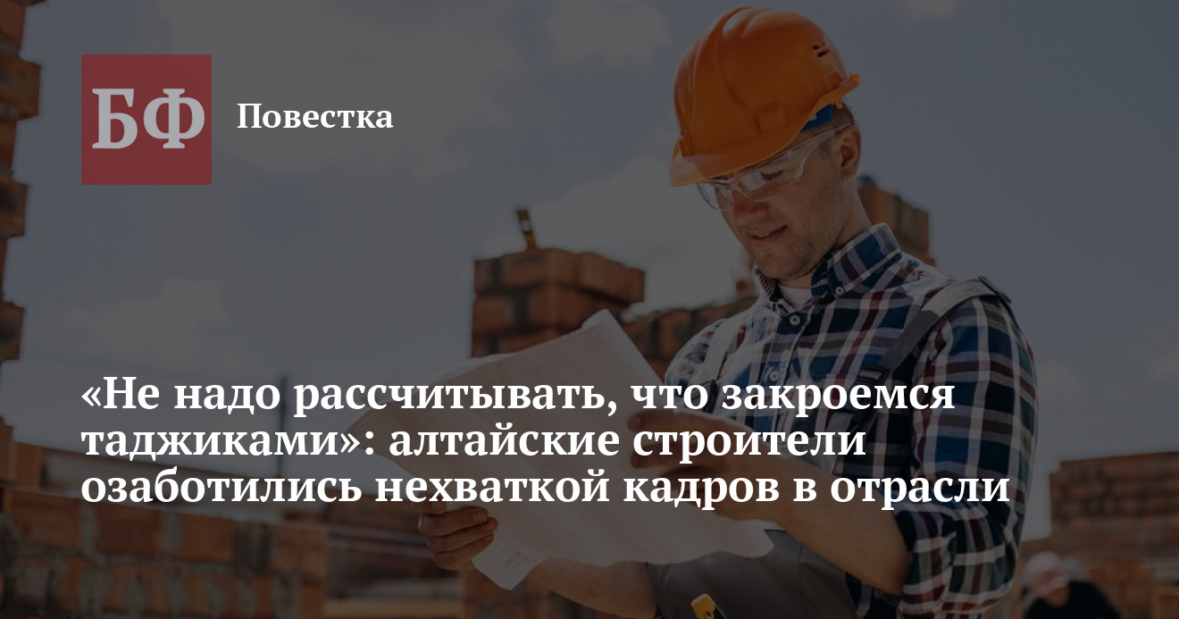 23 июля в Союзе строителей Алтайского края прошло заседание правления, на котором обсуждалась кадровая ситуация в отрасли. Как отметил председатель правления организации Александр Мишустин, сфера испытывает острую потребность в работниках, однако ее представители по какой-то причине не прилагают ощутимых усилий по разрешению вопроса. На пассивность строителей указали и представители образовательных организаций.