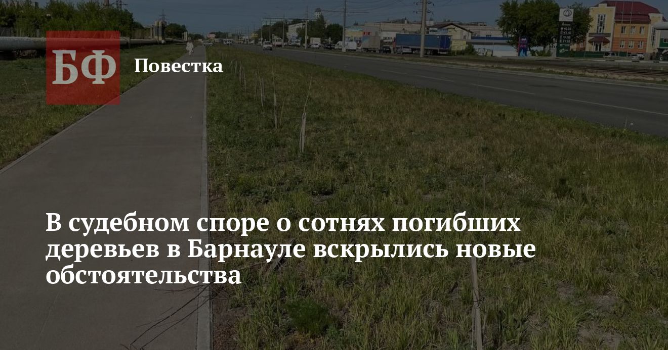 Барнаульские власти продолжают попытки взыскать с подрядчика, который занимался озеленением улицы Попова, более 1,4 млн рублей в связи с гибелью практически всех высаженных деревьев. В ходе очередного судебного разбирательства вскрылось, что деревья и кустарники могли погибнуть из-за снежных валов с пескосоляной смесью, образовавшихся во время чистке дороги, следует из данных судебной картотеки.