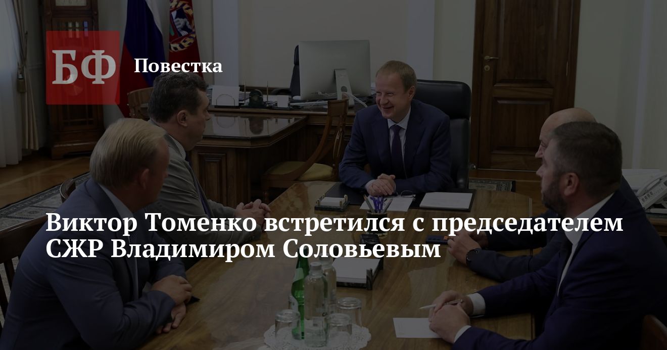 15 августа губернатор Алтайского края Виктор Томенко провел рабочую встречу с председателем Союза журналистов России Владимиром Соловьевым. Они обсудили вопросы, связанные с проведением «Инфорума» в Барнауле и участием делегации региона в другом журналистом форуме. Подробности сообщает пресс-служба краевого кабмина.
