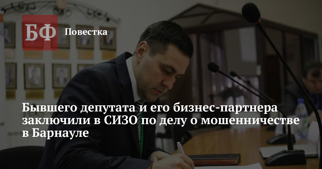 29 августа Индустриальный районный суд Барнаула избрал меру пресечения в отношении бывшего депутата городской думы, бизнесмена Ивана Куца и его партнера Евгения Якунина. Представитель суда сообщил «Банкфаксу», что их отправили в СИЗО до 18 октября по обвинению в мошенничестве. Оба выступали подрядчиками в ходе строительства спорткомплекса на улице Сиреневой, 42 в Барнауле в рамках концессионного соглашения с Минспорта Алтайского края.