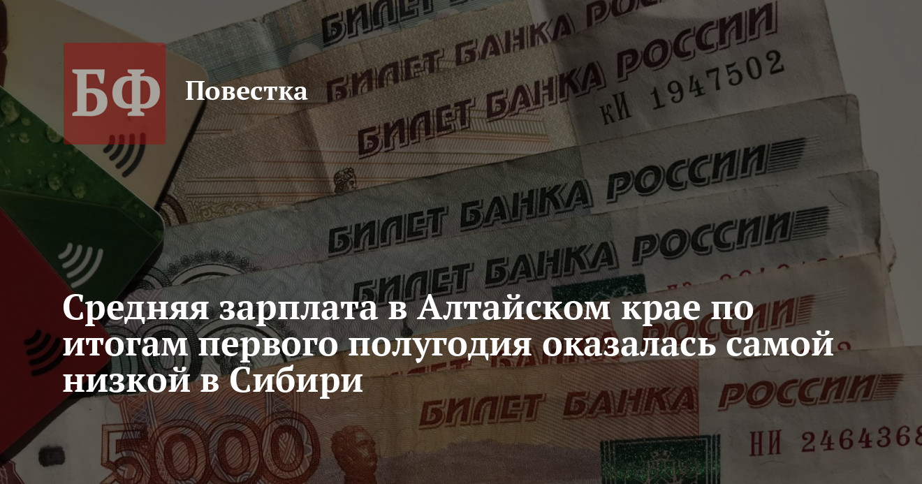 По результатам января-июня средняя зарплата в Алтайском крае составила 51 384 рубля. Как следует из данных Новосибирскстата, это самый низкий показатель в Сибири.