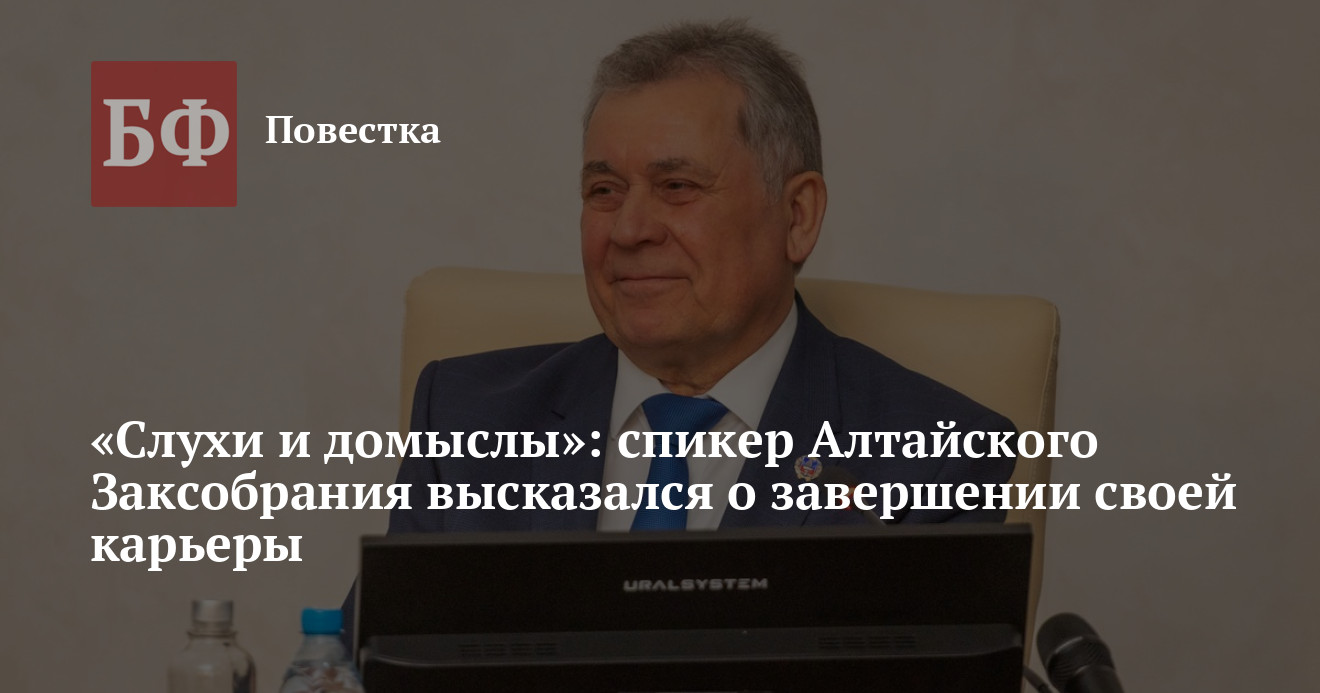 Председатель Алтайского Заксобрания Александр Романенко прокомментировал начавшуюся в СМИ и анонимных Telegram-каналах дискуссию о том, кто может занять его пост в следующем созыве. Он назвал эти предположения домыслами и слухами. О возможной смене поколений в АКЗС Романенко высказался в ходе интернет-конференции на сайте парламента, отвечая на вопрос «Банкфакса».