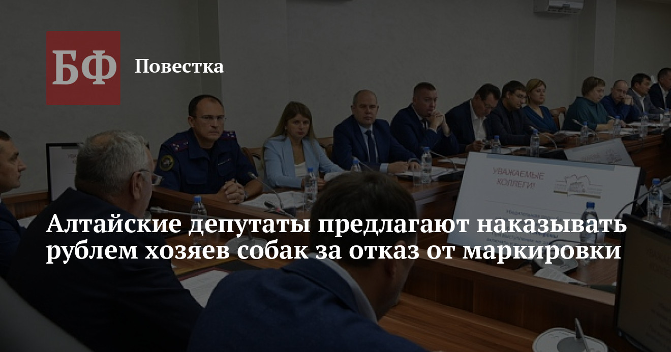 Депутаты Алтайского Заксобрания 11 сентября обсудили поправки к краевому законопроекту «О регулировании отдельных правоотношений в области обращения с животными» и в их числе оказались штрафы за отказ владельцев домашних собак от чипирования. Как сообщается на сайте АКЗС, они могут составить 5000 рублей.