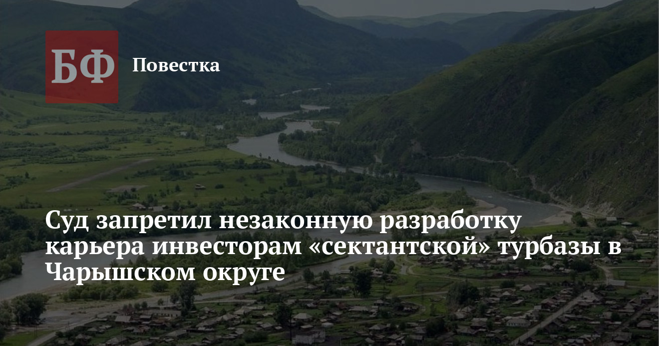 Напомним, в июне 2024 года жители Чарышского округа заявили, что обеспокоены строительством в муниципалитете турбазы и завода, так как, по их мнению, это значительно повлияет на качество жизни людей и угрожает обитанию краснокнижных растений и животных. Сельчане отмечали, что инициаторы проекта могут быть связаны с религиозной организацией, поэтому называли их «сектантами». Районная прокуратура проводила проверку и выявила несколько нарушений в деятельности «Чарыш Партнерс». Также алтайские правоохранители инициировали проверку, которую поставили на контроль в федеральном следкоме. Помимо того, сельчане провели митинг против строительства объектов в августе текущего года.