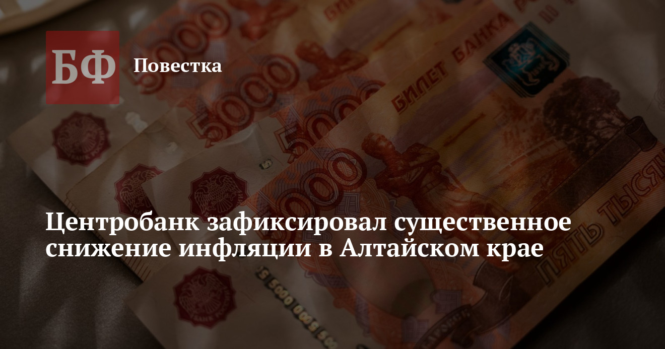 Напомним, июльское ускорение инфляции в Алтайском крае ЦБ объяснял индексацией тарифов ЖКХ и спросом на отдельные услуги. Добавим, что по итогам заседания 13 сентября совет директоров Центробанка РФ продолжил придерживаться курса жесткой денежно-кредитной политики и повысил ключевую ставку на 1 п. п. — до 19%. При этом регулятор отметил, что рассматривал вариант повышения вплоть до 20%, и не исключил возможность дальнейшего роста на ближайшем заседании.