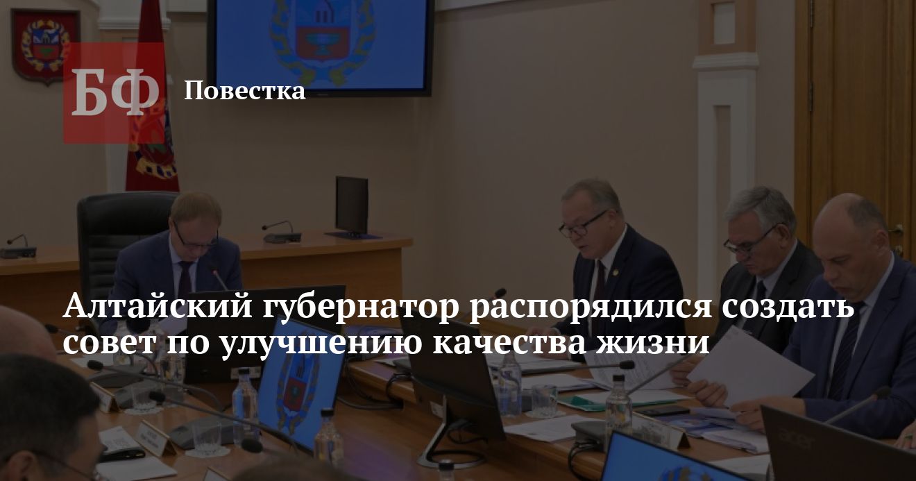 В Алтайском крае будут действовать совет по улучшению качества жизни. В его состав войдут члены регионального правительства, руководители профильных министерств и управлений, а также ряда организаций. Соответствующие документы подписал губернатор Виктор Томенко.