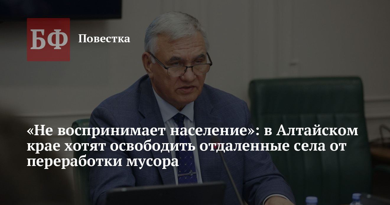 Власти Алтайского края предлагают освободить отдаленные районы в регионах от сортировки и переработки отходов и работать по старинке — создавать объекты захоронения и складировать мусор там. Об этом заявил вице-губернатор Александр Лукьянов в рамках Дней Алтайского края в Совете федерации на заседании по реализации проектов комплексного развития сельских территорий.