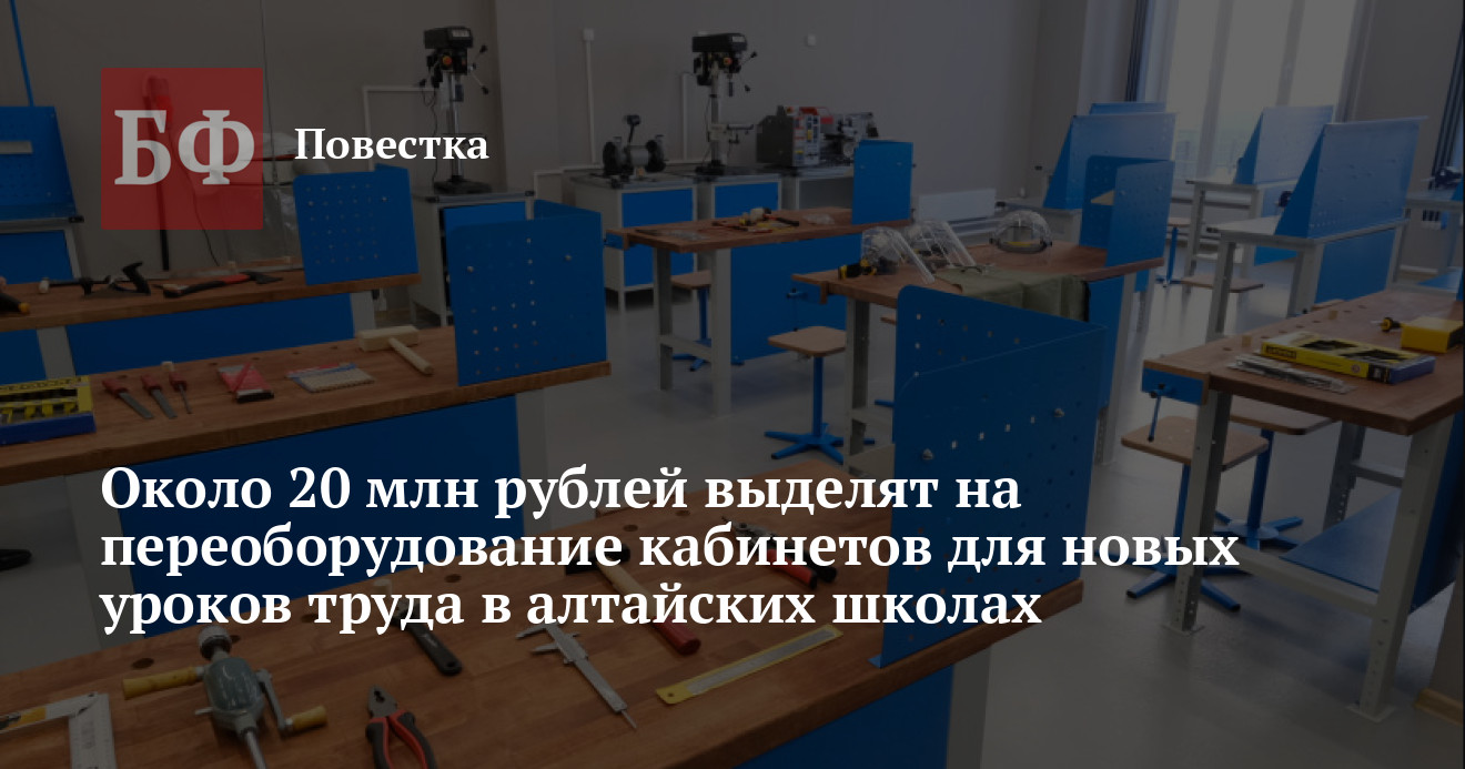 В 2024 году на оснащение кабинетов труда в школах Алтайского края дополнительно будет выделено около 20 миллионов рублей. Об этом в ответе на запрос «Банкфакса» сообщили в Минобрнауки региона.
