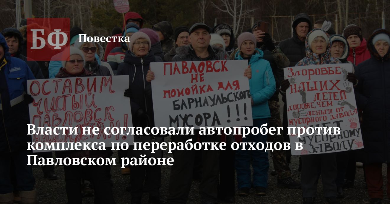 Как следует из ответа, администрация Павловского района не может согласовать акцию, запланированную на 19 октября, по поводу возможного размещения в муниципалитете комплекса по переработке отходов. Дело в том, что в уведомлении о возможной акции, которое ранее направил Орлов, по мнению чиновников, были допущены нарушения краевого закона «О порядке проведения собраний, митингов, демонстраций, шествии и пикетирований на территории Алтайского края». Утверждается, что организатор не указал протяженность маршрута автопробега, а также улицы и дороги, которые планировали использовать во время мероприятия. Поэтому власти не могут оценить, соответствуют ли места проведения акции требованиям законодательства, говорится в документе.