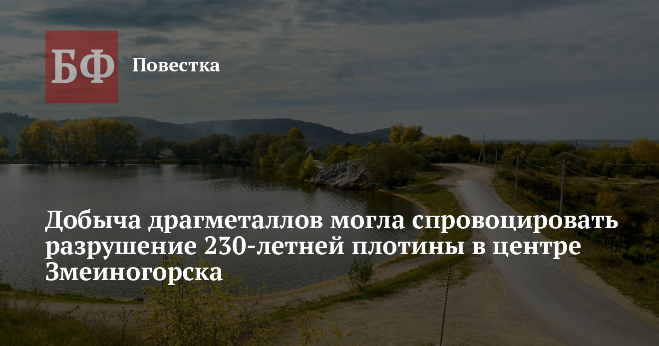 Среди жителей Змеиногорска возникли опасения по поводу сохранности старинной плотины на реке Змеевка, рядом с которой сейчас ведется добыча золота и серебра. Работы, предположительно, спровоцировали разрушительные процессы — на дороге, идущей по гидротехническому сооружению (ГТС), появились трещины, а в основании плотины течет ручей, рассказал в беседе с «Банкфаксом» горожанин Евгений Цыбин. По его мнению, властям нужно изучить ситуацию и принять меры для восстановления объекта. Между тем глава Змеиногорска Владимир Девятилов сообщил агентству, что мэрия не сомневается в сохранности ГТС — поводов для волнений якобы нет, но есть другие проблемы, возникшие в связи с добычей.
