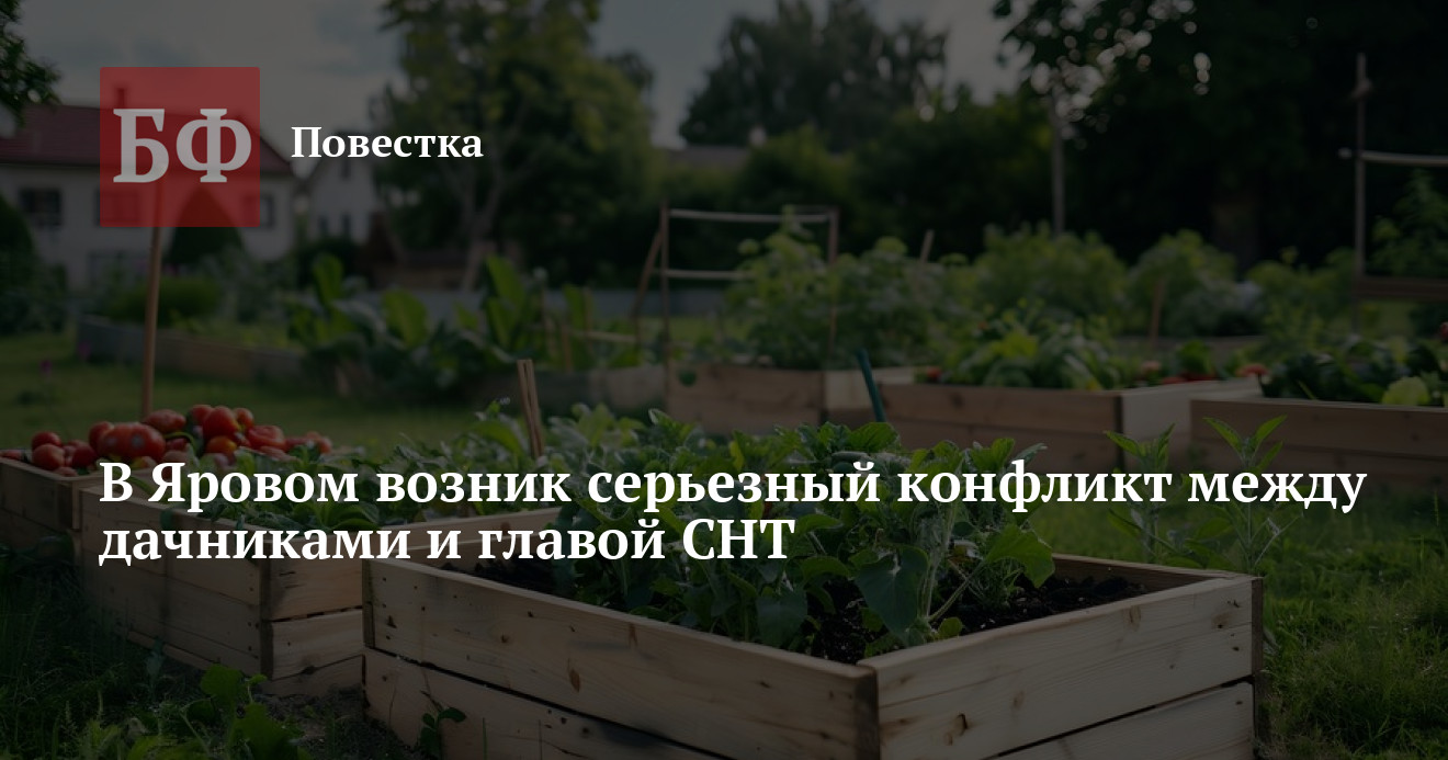 В редакцию ИА «Банкфакс» обратились дачники СНТ «Химик-1» в Яровом, которые сформировали инициативную группу для «борьбы» с председателем товарищества Владимиром Овчинниковым. По их мнению, глава товарищества якобы расходует взносы граждан и распоряжается бесхозными участками по своему усмотрению, в связи с чем они обратились в правоохранительные органы, которые не обнаружили в его действиях ничего предосудительного. Сам Овчинников в разговоре с «Банкфаксом» отверг претензии граждан и объяснил свою версию событий.