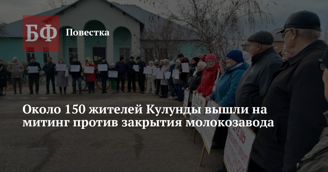 26 октября в Кулунде прошел митинг против закрытия АО «Кулундаконсервмолоко». На него пришло около 150 человек, включая работников молокозавода. Протестующие вышли с плакатами: «Закрытие очередного завода — это распад села», «Не нужен завод вам, отдайте государству», «Вы лишаете нас не завода, вы лишаете нас жизни!», «Сохраним завод для наших защитников» и другими.