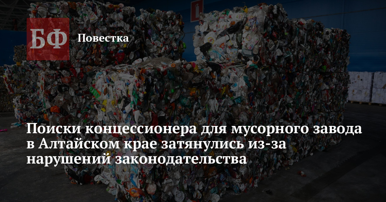 С 11 октября торги по определению концессионера для строительства комплекса по переработке отходов (КПО) для Барнаульской и Каменской зон приостановлены из-за жалобы одного из участников. ФАС России признала обоснованной часть доводов фирмы, которая заявляла о нарушении законодательства со стороны Минприроды Алтайского края, как организатора торгов, и вынесла предписание об устранении нарушений в конкурсной документации.