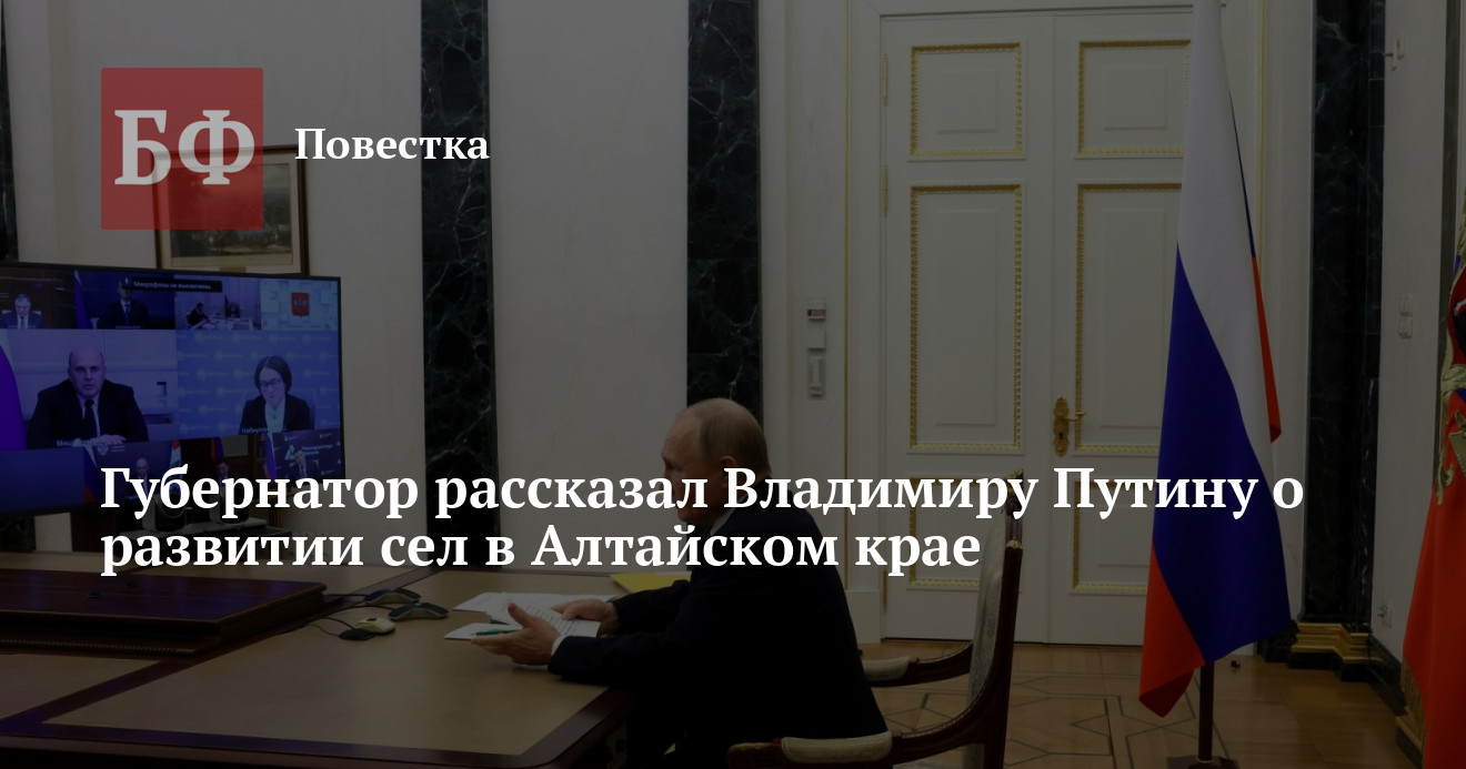 Виктор Томенко также обратился к Владимиру Путину с просьбой увеличить финансирование для развития алтайских сел. «Я хочу сказать, что возможное дальнейшее увеличение ассигнований, а мы постоянно этот вопрос обсуждаем на уровне правительства и федеральных органов власти, на их реализацию будет очень хорошо воспринято нашими жителями, нашими избирателями и окажет заметное влияние, я в этом убежден, на достижение национальных целей развития», — сказал губернатор.