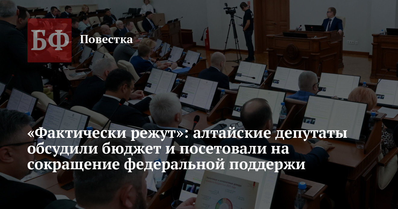 31 октября состоялась очередная 34-я сессия Алтайского краевого Законодательного Собрания. Основной темой заседания стал проект краевого бюджета на 2025 год и на плановый период 2026 и 2027 годов — его приняли в первом чтении. Главным «достижением» предполагаемого бюджета назвали значительный рост собственных доходов и обратили внимание на «потери» в виде сокращения финансовой поддержки из федеральной казны.